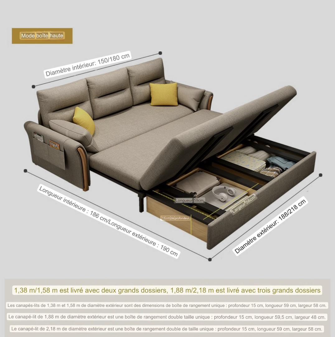 Découvrez ce canapé-lit multifonction alliant confort, praticité et design moderne. Fabriqué avec du bois de frêne importé de haute qualité, il garantit stabilité, durabilité et silence (aucun bruit anormal). Son assise est conçue avec des matériaux premium : mousse haute densité, latex naturel et éponge élastique pour un confort optimal.