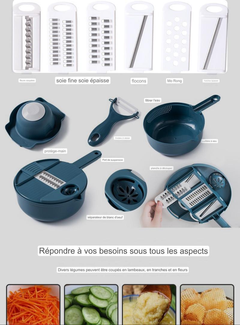 Simplifiez votre cuisine avec notre coupe-légumes rond multifonction ! Avec ses multiples lames interchangeables, son séparateur de blanc d’œuf, son bol de récupération et ses accessoires pratiques, il vous permet de trancher, râper et découper tous types de légumes en un clin d’œil. Disponible en bleu marine ou couleur lotus.